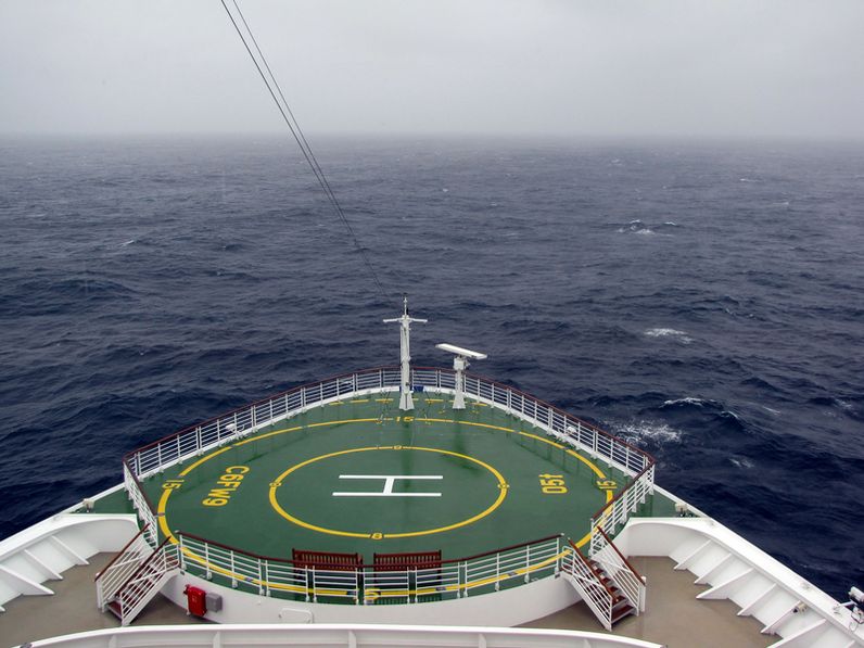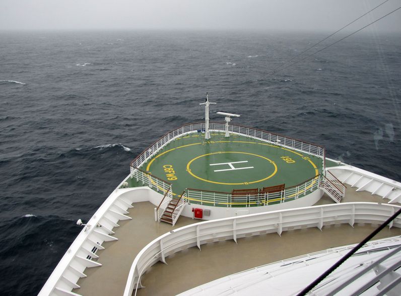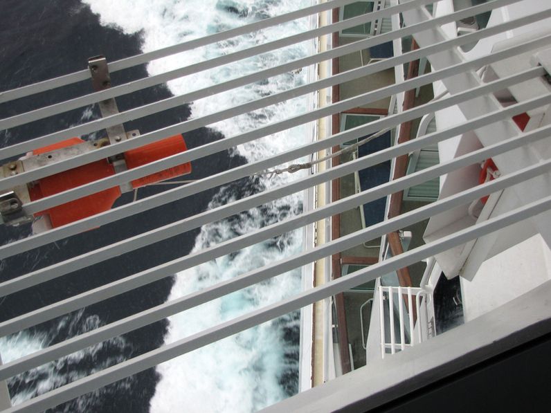 Looking aft and down from the bridge wings
