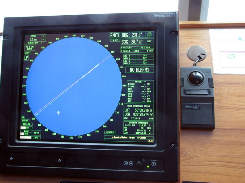 Both bridge wings have a plexiglass window in the floor, so the captain can see the dock, or tugs or sea or whatever .