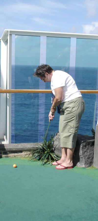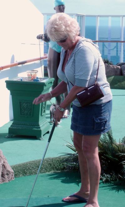 Kathy putts.