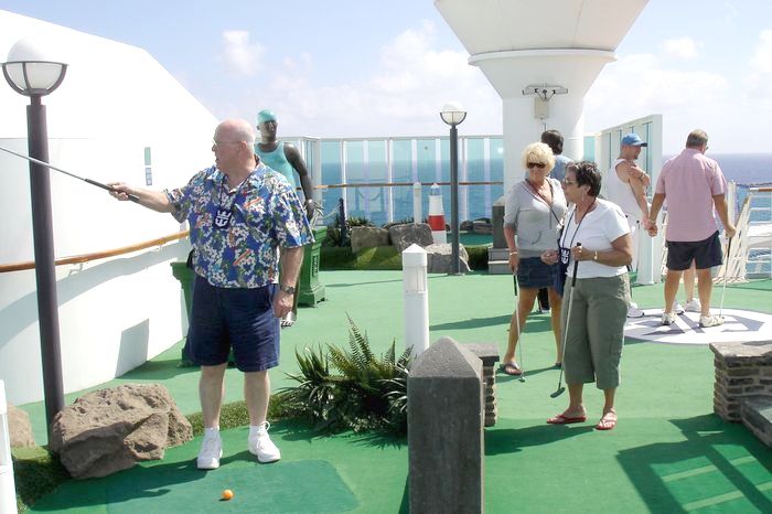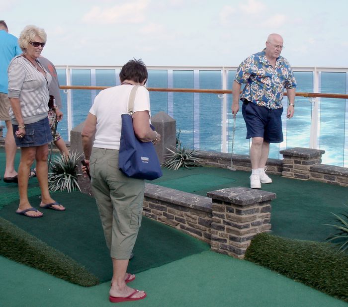 After Mark bought us delicious black-and-white milkshakes art the SeaView cafe, we headed further up to the mini-golf course.