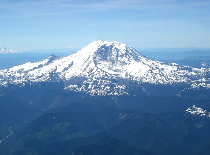 on her shoulder (Little Tahoma, a subpeak) is to the north-east of the peak.