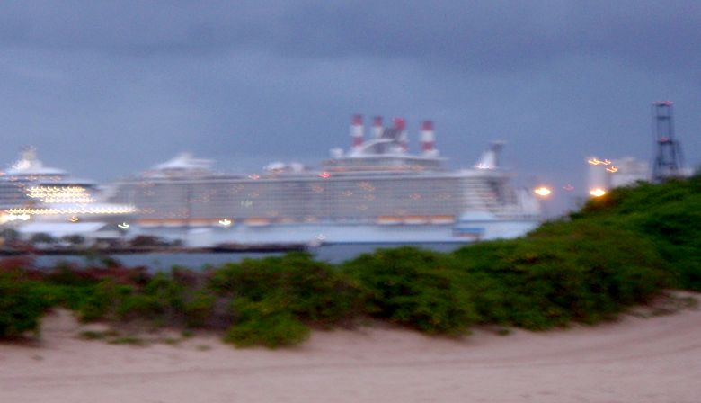 Before dawn, the Oasis was visible down the inlet, but I couldn’t get it in focus.